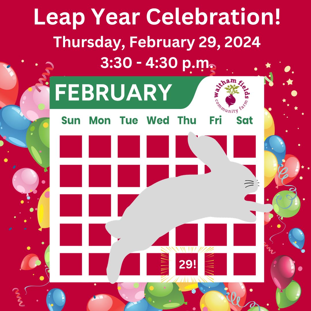 Join the education team, the angora rabbit family, and your fellow learners for a hopping good time celebrating and learning about why we have this special leap day on the calendar every four years. Featuring rabbit hurdle jumping demonstrations, a human leaping contest, solar-powered popcorn & hot chocolate buffet, a leap-year-themed farm craft table and dance party for all ages!
